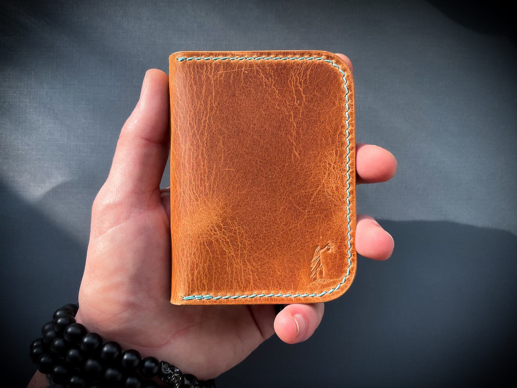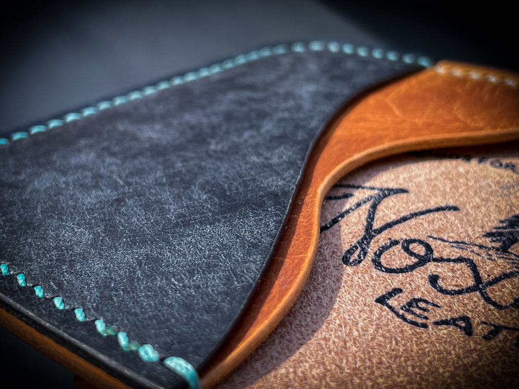 Due to the nature of leather, no two wallets will look the same. Texture, color, and general appearance may vary slightly. Color may vary slightly due to differences in computer monitor, resolution, and other display settings on your computer or phone. This wallet was created in a dog-friendly household.