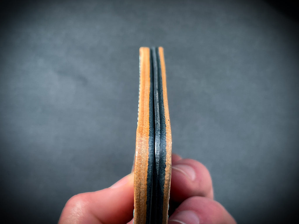 This wallet is comprised of 4 pockets - the front left pocket having been designed for easy access to folded cash, receipts, punch cards, or business cards while still having the ability to act as a card pocket if needed. The unique shape of the pockets gives this wallet a nice flow. It is slim enough to be carried in the front pocket.