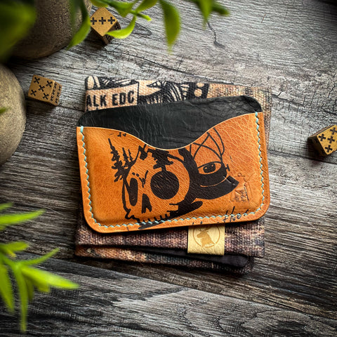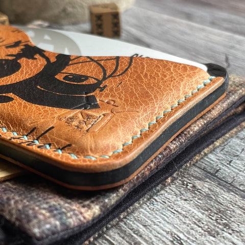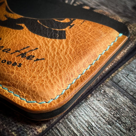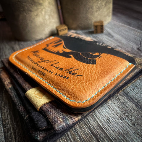 Due to the nature of leather, no two wallets will look the same. Inkstamps may be just a slightly different placement. Texture, color, and general appearance may vary slightly between hides. Color may vary slightly due to differences in computer monitor, resolution, and other display settings on your computer or phone. This wallet was created in a dog-friendly household.